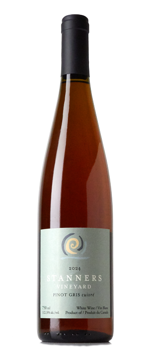 The grapes for our 2024 Pinot Gris are from our estate vineyard and the Devil’s Wishbone vineyard, in Prince Edward County. The wine has a beautiful copper colour which comes from leaving the skins in contact with the juice for 72 hours before pressing and starting fermentation. This technique has resulted in a wine with added complexity, and a touch of tannins on the finish. It’s a wine style that dates back hundreds of years, but is now not so common. We have taken it and developed it for our own tastes with compelling results.